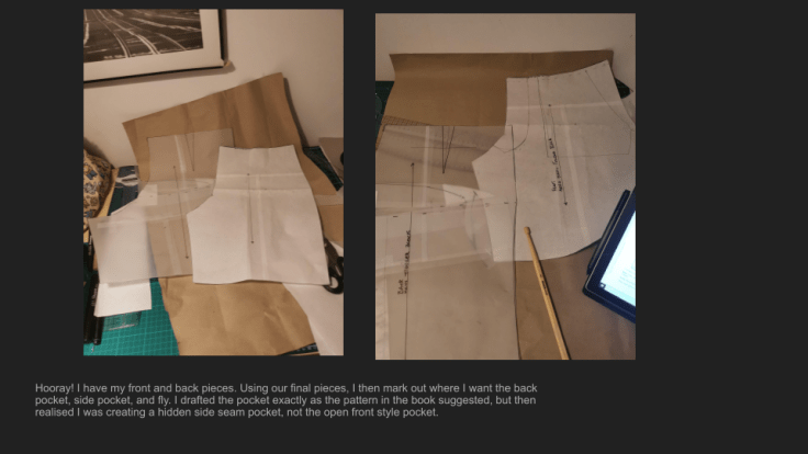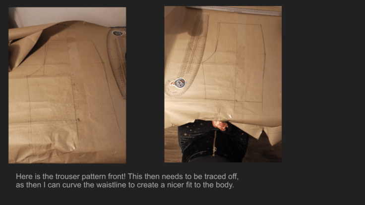 Here is a slideshow of me creating the pattern for our trousers in the tailoring unit. I followed the pattern in Aldrich WInfred’s menswear book. It is easy enough to follow, but I have included a couple of my mistakes in the photographs and explained what I would do for next time I needed to draft this pattern!