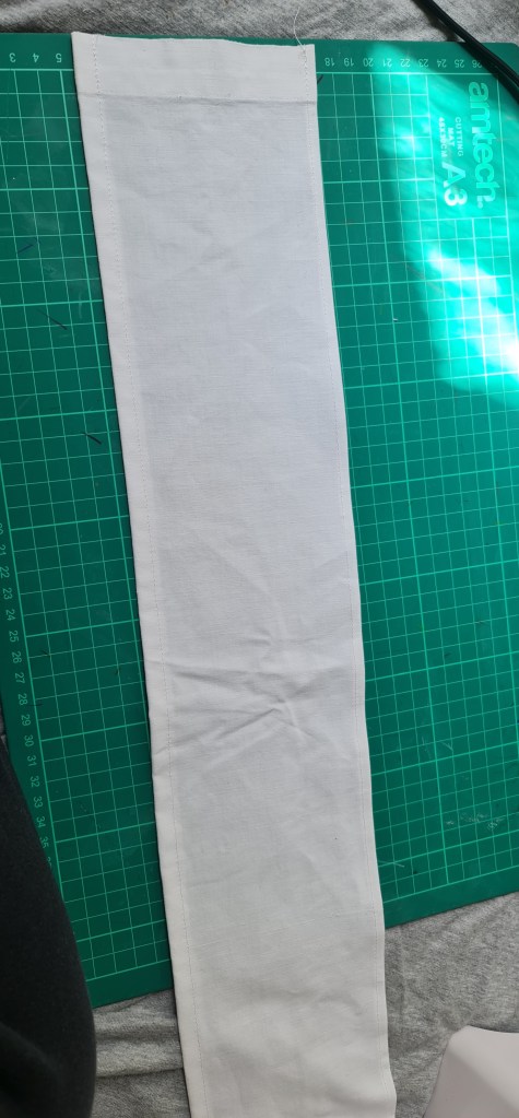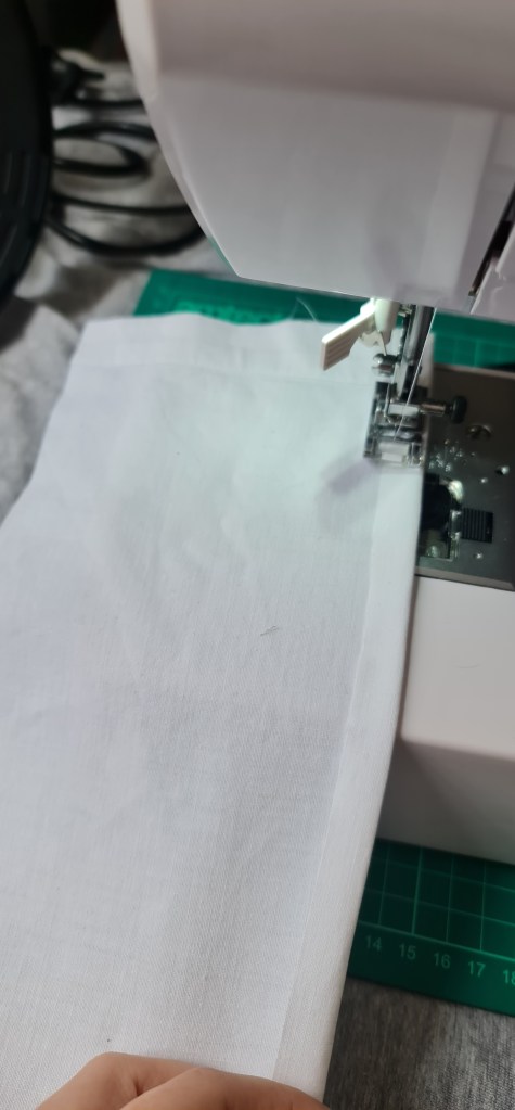 Just a couple of pictures to show my strips stitched together, and then hems and things rolled and sewn. For the side that will be sewn to the neckband, it is okay to just fold once to sew down, as this will be hidden underneath the ruff, right at the base of the neck, so its very unlikely to show.
