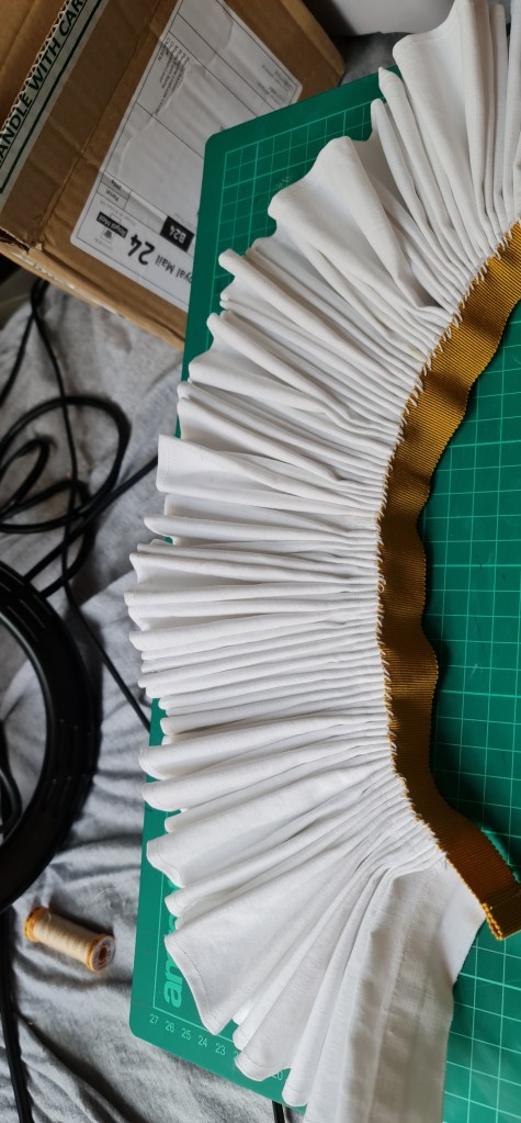 Its holding its pleats really well, but I’m going to have to go in and stitch the figure eights to keep it looking neat and tidy. I actually prefer the slightly chaotic look, however I’m not a rich royal tudor, so what taste do I have?