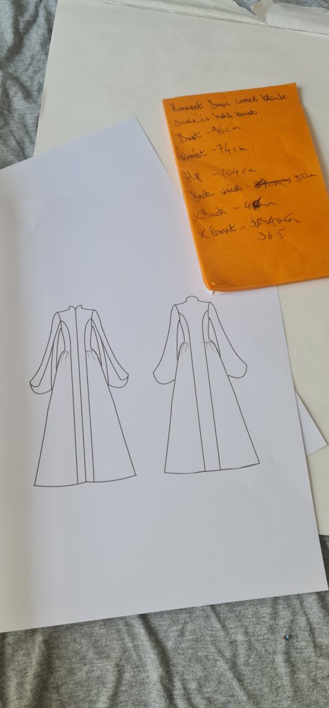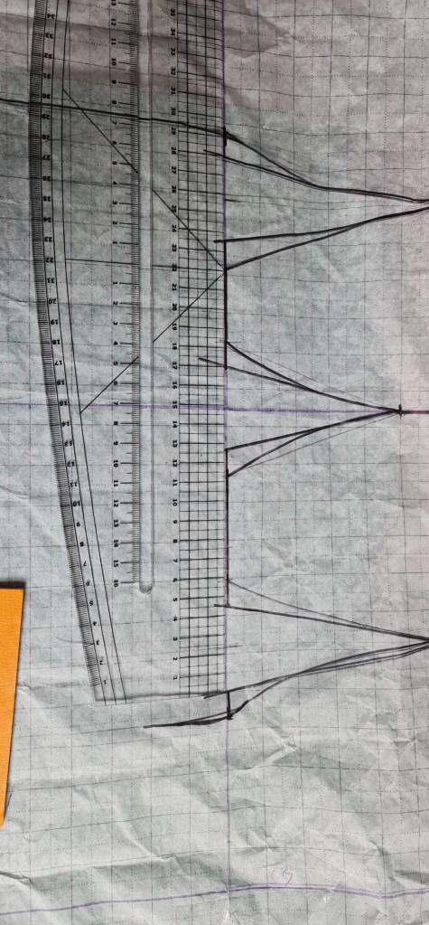 I traced off another copy of the block I made for the stay, without the stays seam lines, as I want to create a different shape for the dress.