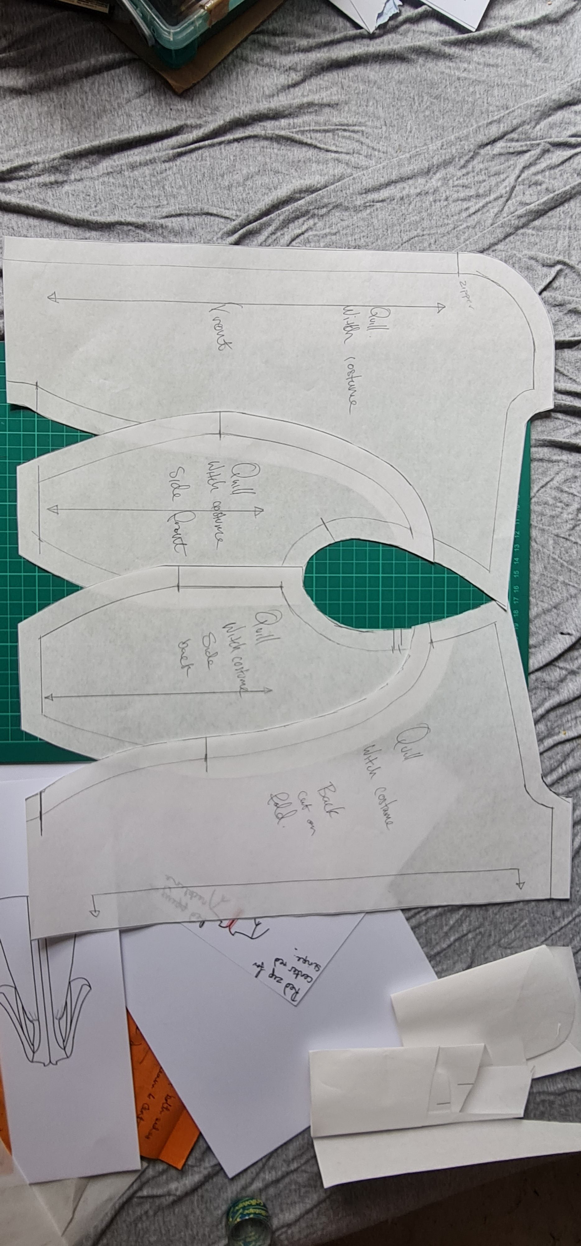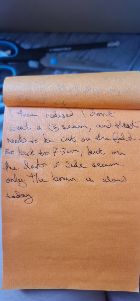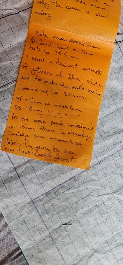 During the patterning process for the dress, I struggled quite a bit – I had been dealing with quite a high pain level, which sometimes affects my ability to figure the more mathmatical parts out. Team that up with the dyslexia, and it can be a recipe for disaster. However, I took notes the entire time, and them helped immeasurably.