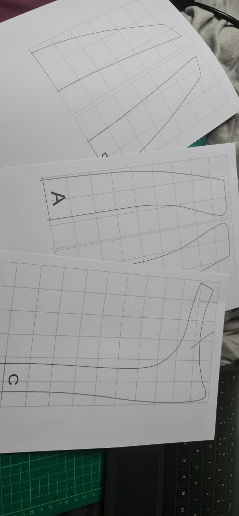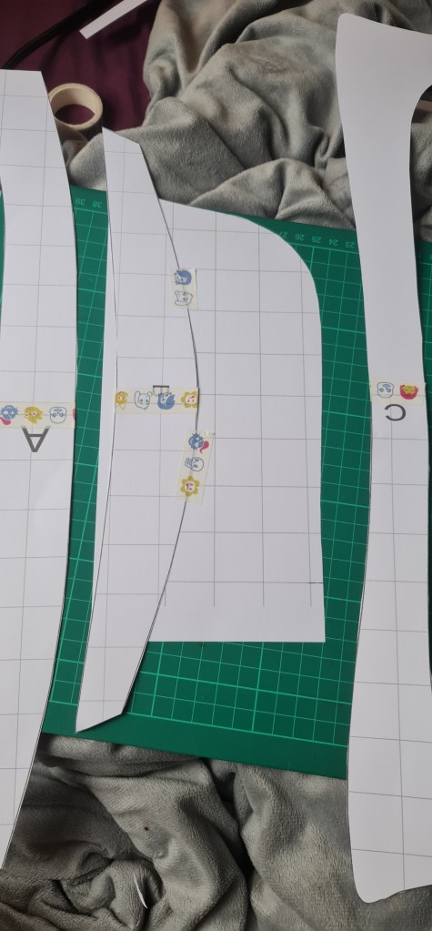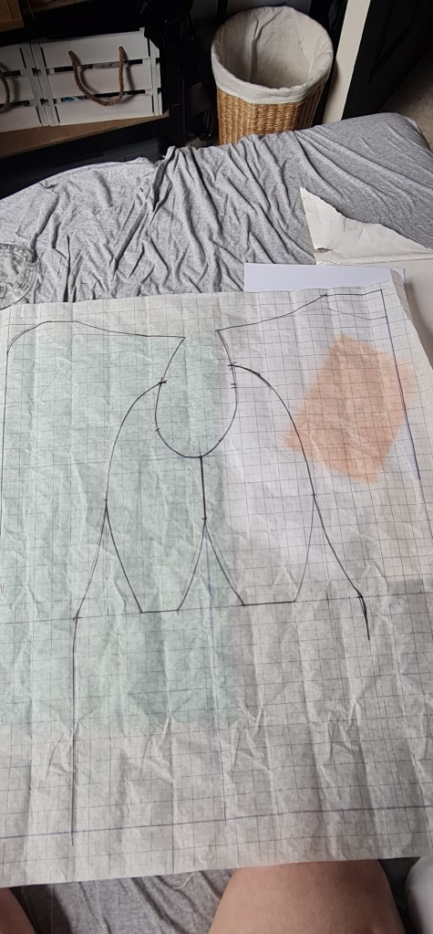Here was attempt one at the top part of my pattern. As you can see, it didn’t fit at all, and was just all kinds of wrong. For some reason, I added in these really steep curves on my darts. I really have no idea why, its not something I’ve ever done but here we are. Fortunately, I realised it, and corrected it and drafted a new pattern without the insane looking darts