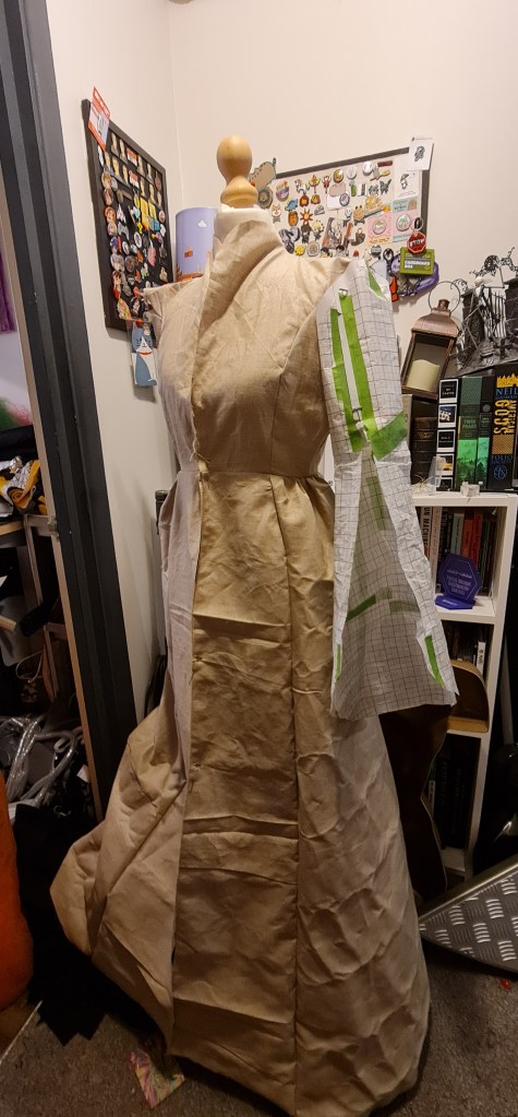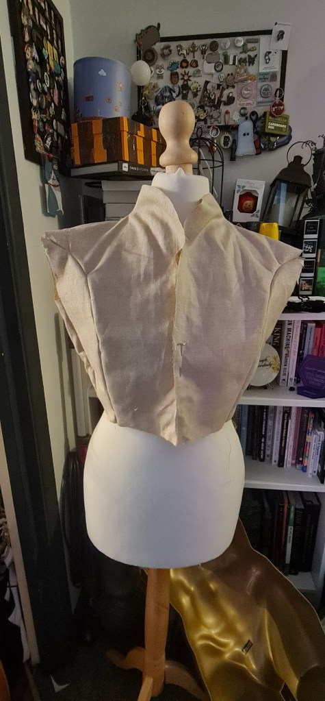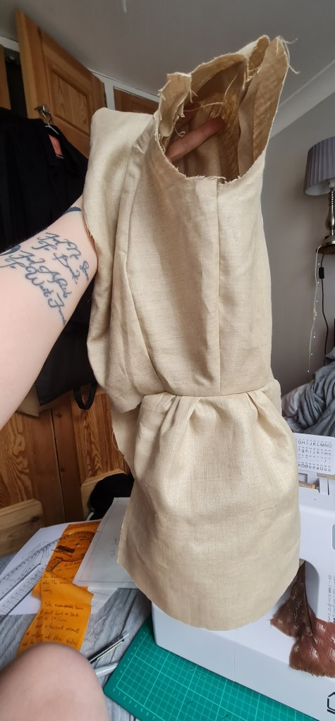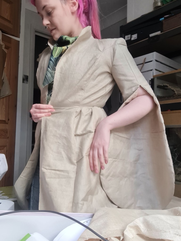 MUCH better fit – Thankfully it was an easy fix. I was worried about the shoulder here, as they look really wide, but I have much wider shoulders compared to my mannequin, and once I had fixed on a sleeve it looked much more normal.