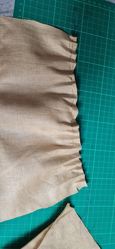 After the toile worked as I had hoped, I then combined my Side front and Side back panels into one piece, that the gathered waist is then sewn onto. I did this to eliminate the side seam, and create one long panel that matches the front and back pieces.