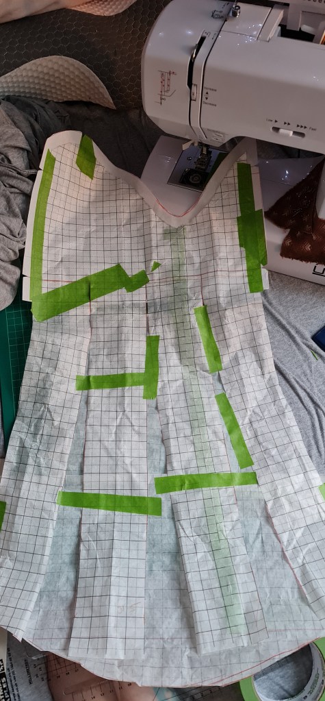With that panel piece working as I had hoped, I then started pattering it out into the full length of the dress.