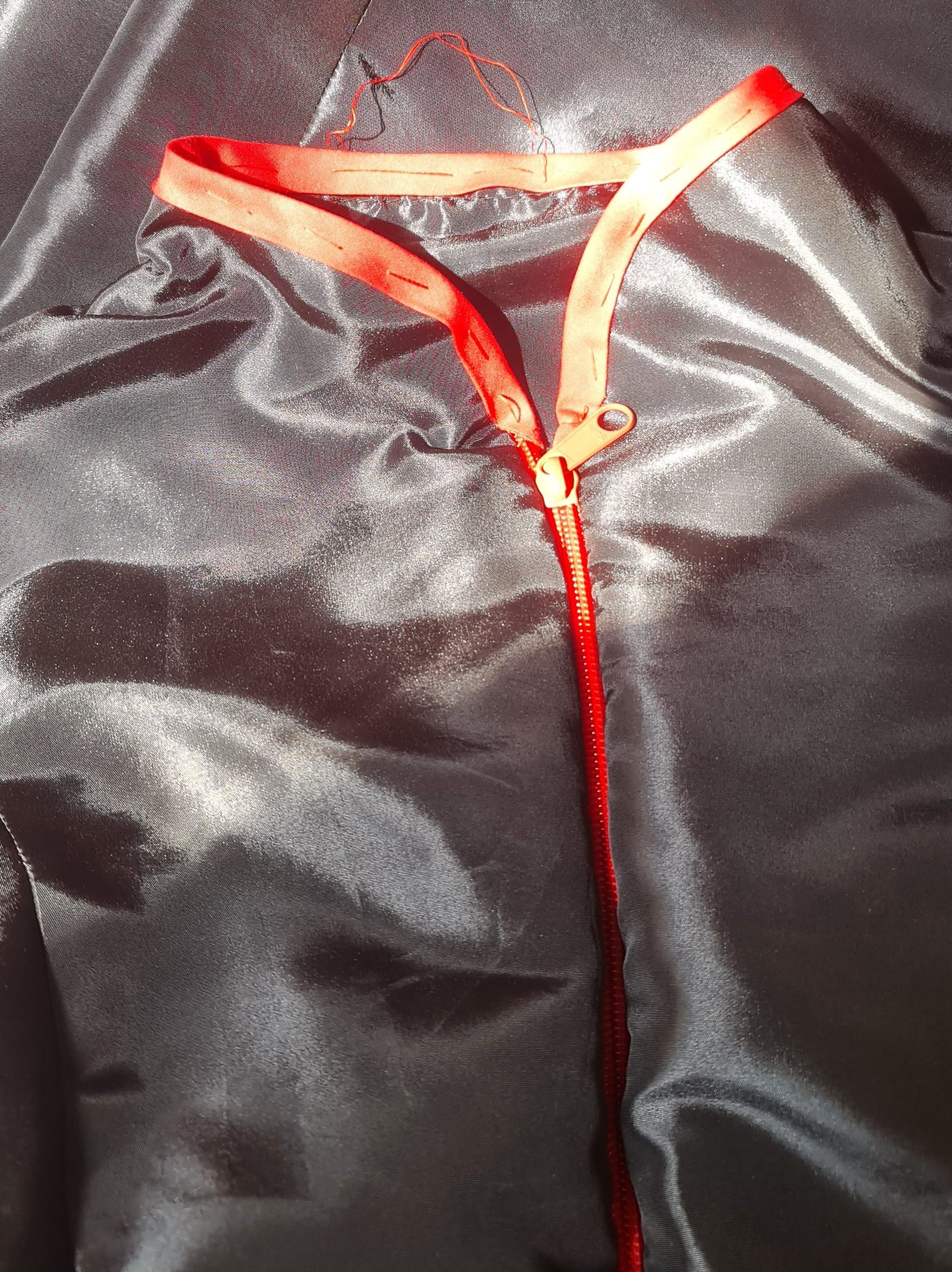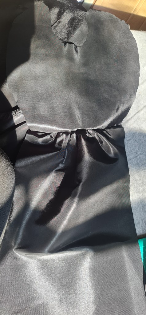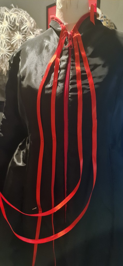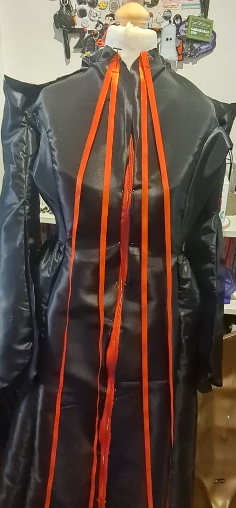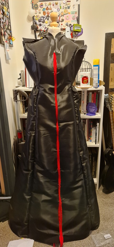 A quick test fit, and its looking good! For the inside of the sleeves, I used a matte fabric, to create a little contrast between the inside and outside. I also thought that this would read better on stage, as the taffeta is quite shiny.