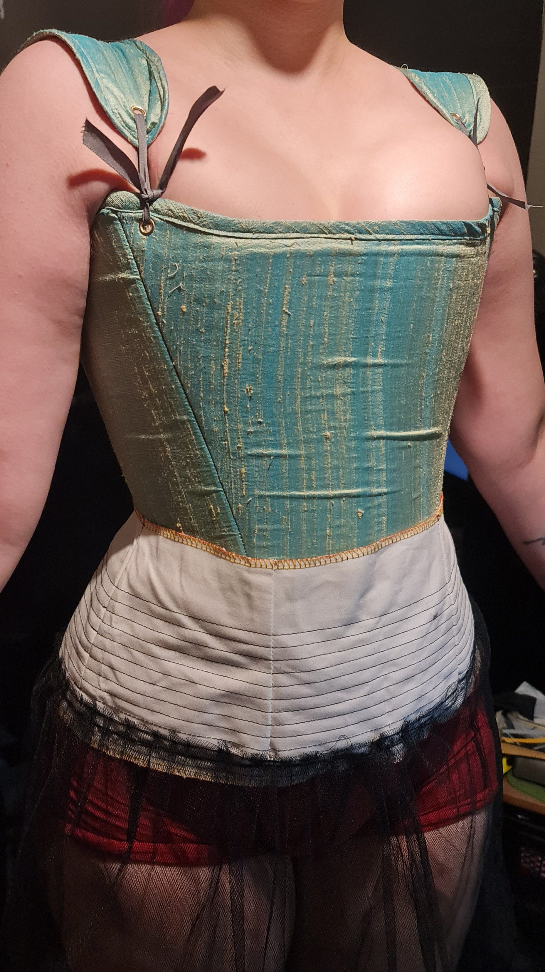 Here is the finished petticoat! Its not super full, but its exactly what I was looking for. With that done alongside the tudor stay, I then started to pattern out the dress to make a toile.