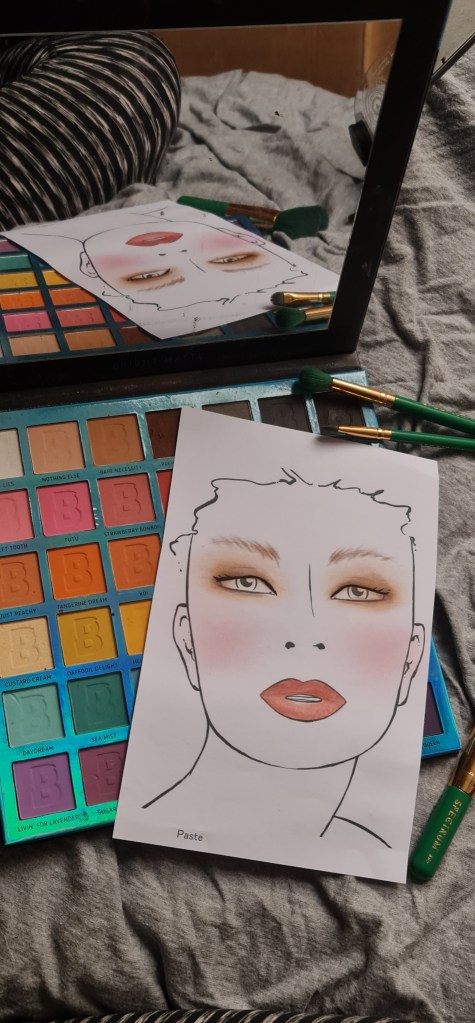 Makeup chart and makeup test. Wanted it simple as there is not much makeup on the original picture