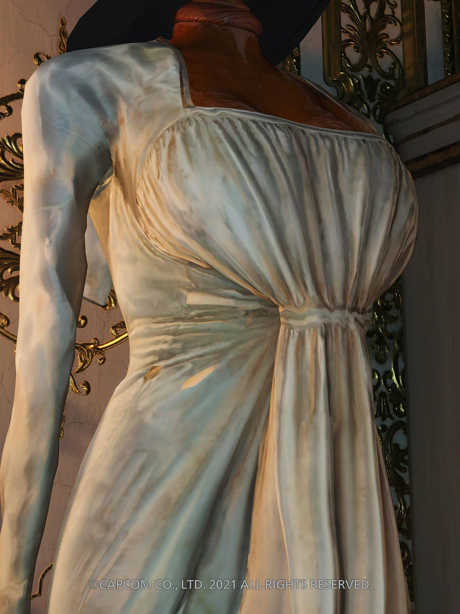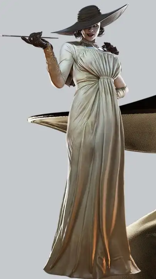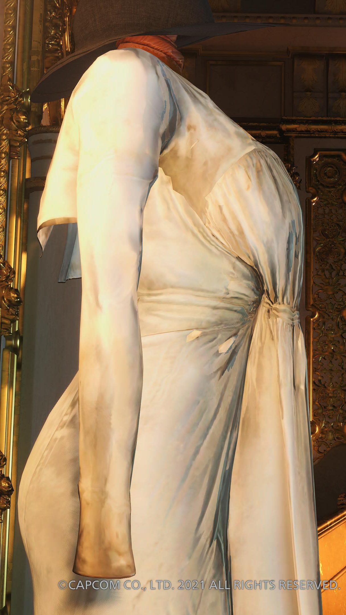 By now, I think anyone who is even the tiniest bit interested in videogames has seen our new overlord, Lady Dimitrescu. The trailer of Resident Evil: Village featured her, and the internet lost it’s collective mind… Me included. She’s a 9ft tall vampire yokai hybrid, with fashion sense to die for. The minute I saw this dress, I wanted to recreate it, and wouldn’t you know it, we had a self-directed unit appear for our last unit of year 2. Her dress is kind of the perfect project for this: I really wanted to try a full draping on the stand technique, as well as experience with cutting a dress on the bias. I also thought it might be nice to create a dip-dye on the dress, as the first images that came out had that kind of effect; going from a beautiful ivory into a pale, old gold.